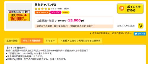ハピタスのFX超初心者向け案件も、いよいよ3件目!本日は外為ジャパンFX案件に参加しました。ハピタスから外為ジャパンFXの口座を開設して、1Lot取引をすると15000ptもらえるという好条件。ハピタスの1pt=1円の価値がありますが、陸マイラーの私たちはこの…